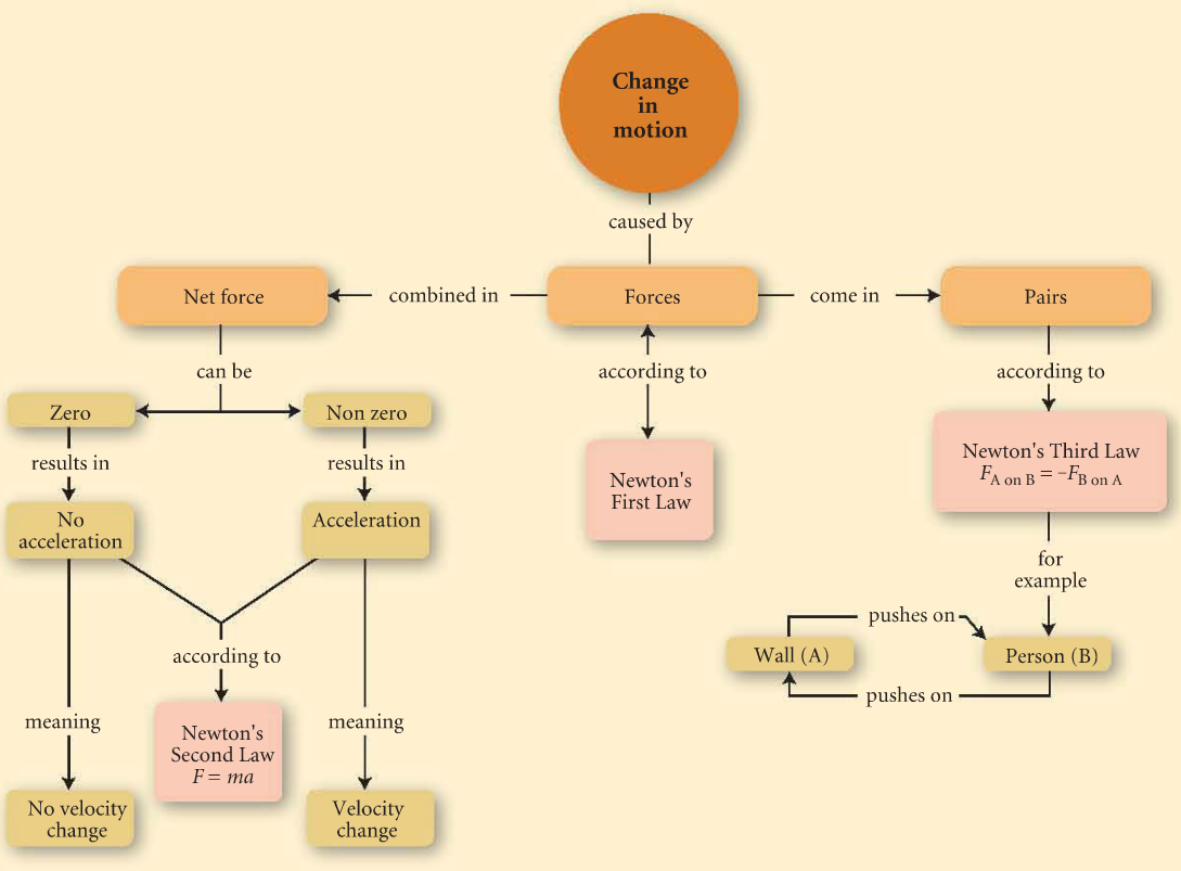 - a net force opposite to the direction of motion = slow down, eventually to a stop, and then accelerating towards the direction of the force